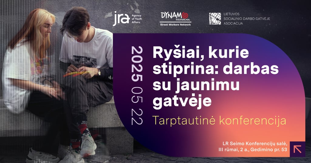 Jaunimo reikalų agentūra ir Lietuvos socialinio darbo gatvėje asociacija kviečia į tarptautinę konferenciją apie jaunus žmones ir darbą su jaunimu gatvėje. Konferencijos tikslas – pristatyti ir reflektuoti darbo su jaunimu gatvėje praktikas bei ieškoti kas svarbu jauniems žmonėms ir bendruomenėms šių dienų neramiame pasaulyje.